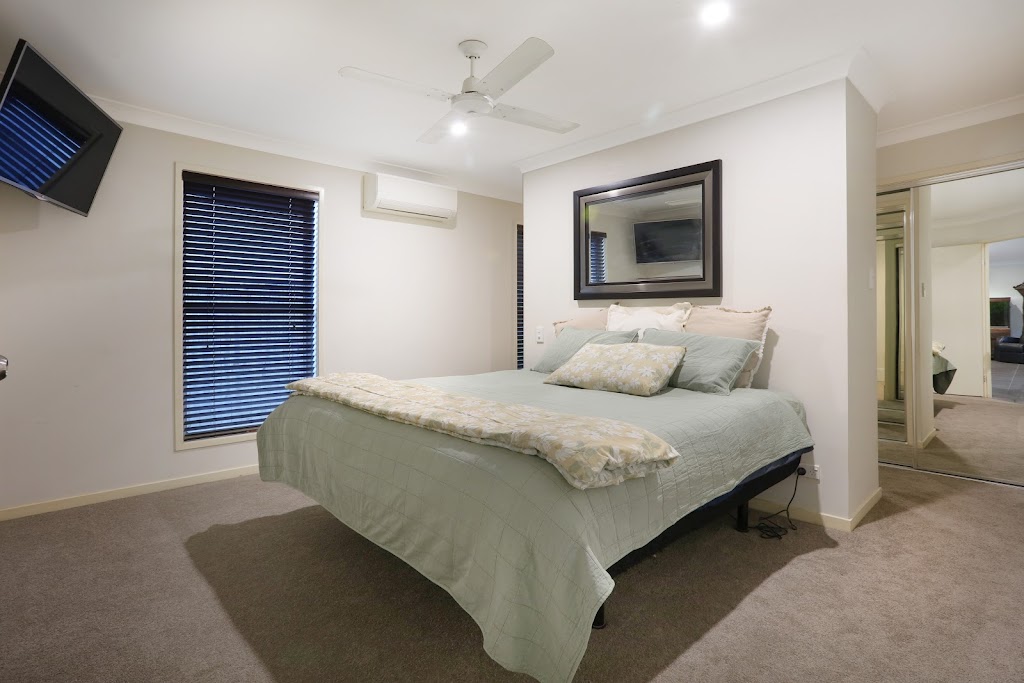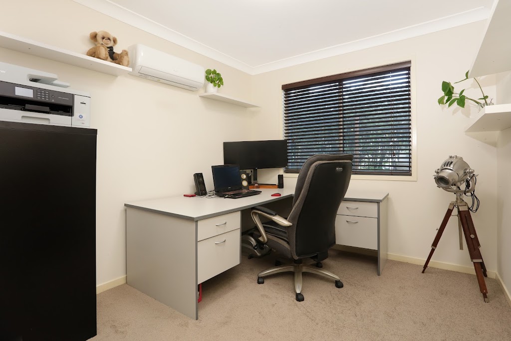 The home offers five bedrooms, including a versatile office that can easily serve as an additional bedroom. Each bedroom and the office are fitted with brand-new carpet. The master suite is a true retreat, featuring air conditioning, ceiling fans, a spacious ensuite with a large bath and shower, and an expansive wardrobe designed for all your clothes and shoes. The office is generously sized, equipped with its own air conditioning and fan for comfort.