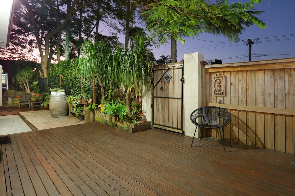 Car enthusiasts and families alike will appreciate the ample covered parking—accommodating four vehicles, with two spaces in the garage and two in the carport. The fully fenced yard showcases elegant timber fencing and hedges for privacy and to capture cool breezes, while the stunning Poinciana tree with decorative lights adds a charming touch. Multiple decks provide ideal settings for entertaining, relaxing, or enjoying a fire pit. A covered outdoor area seamlessly extends from the main living space, making hosting gatherings effortless.